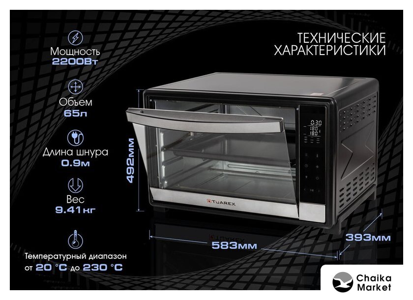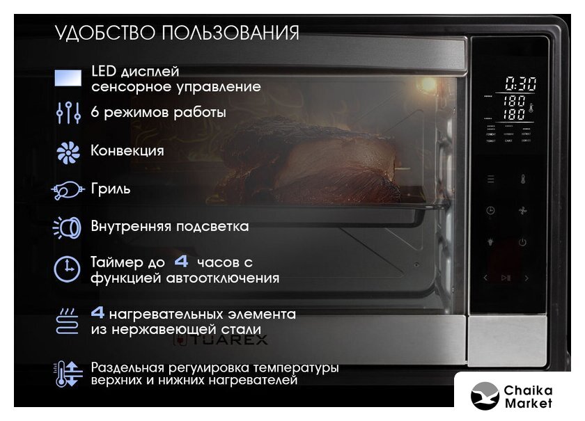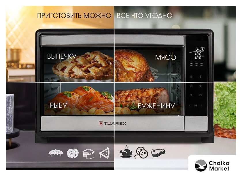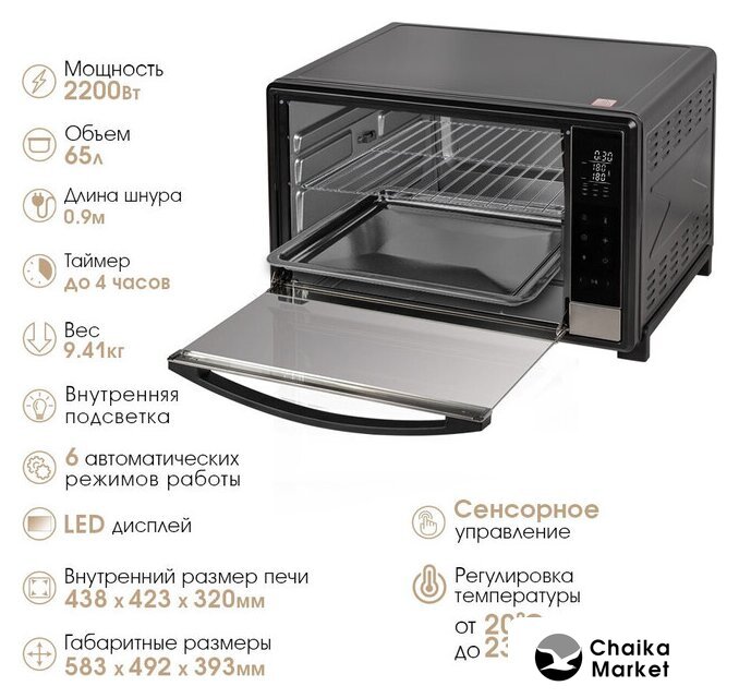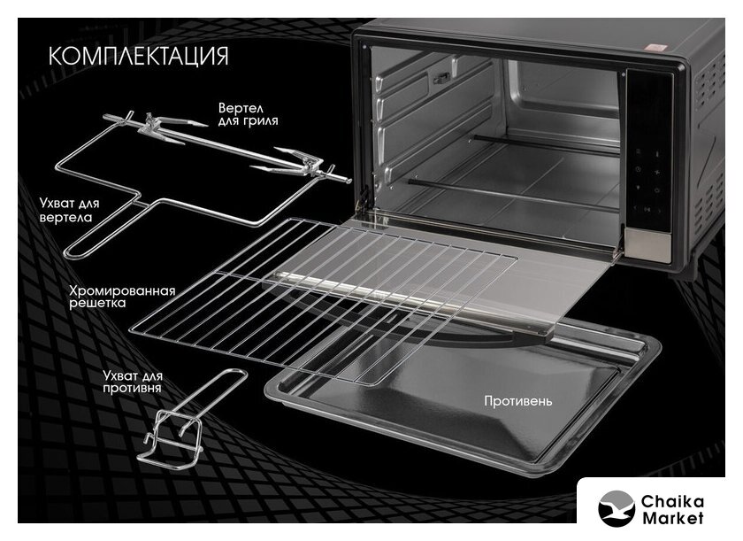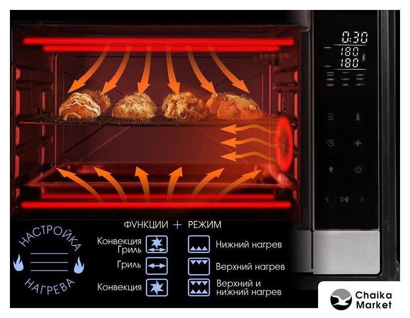 электрический, мощность духовки 1800 Вт, 14 л, конвекция, вертел