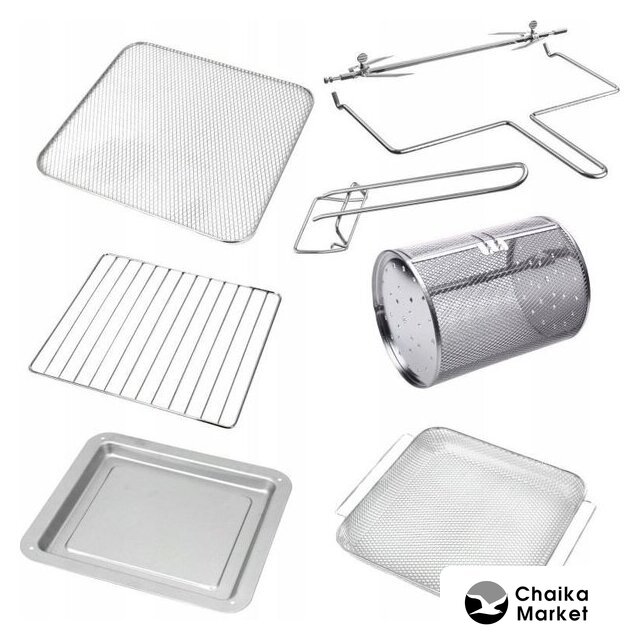 Дополнительные принадлежности | поддон для жиракорзина для картофеля фри с удобными ручкамивращающийся барабан для жарки картофеля фриручка для снятия противня и решетокручка для вертеласетка для жарки |