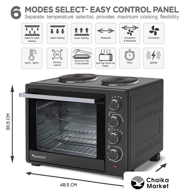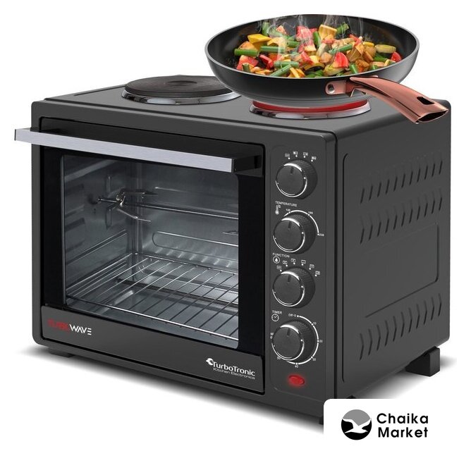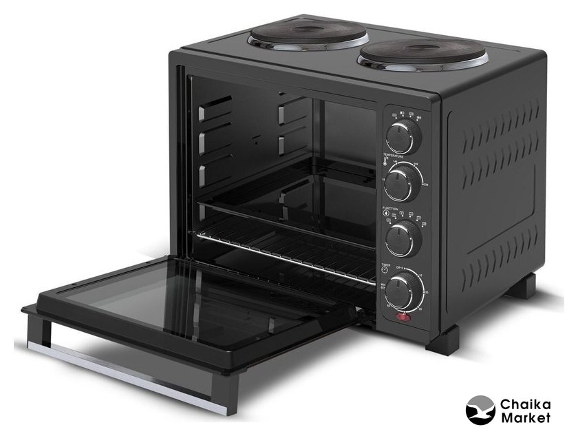электрический, мощность духовки 1500 Вт, 30 л, конвекция, конфорки, вертел