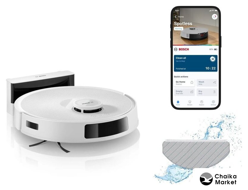влажная уборка, фирменное приложение, сила всасывания 19000 Па, пылесборник 0.3 л, с турбощеткой, навигация: контактный бампер, лидар, камера TOF (3D), датчики перепада высоты, лазерные датчики препятствий, план нескольких этажей, база самоочистки