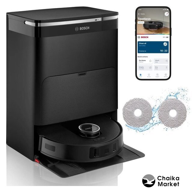 влажная уборка, фирменное приложение, сила всасывания 8000 Па, с турбощеткой, навигация: контактный бампер, лидар, камера TOF (3D), датчики перепада высоты, лазерные датчики препятствий, план нескольких этажей, база самоочистки