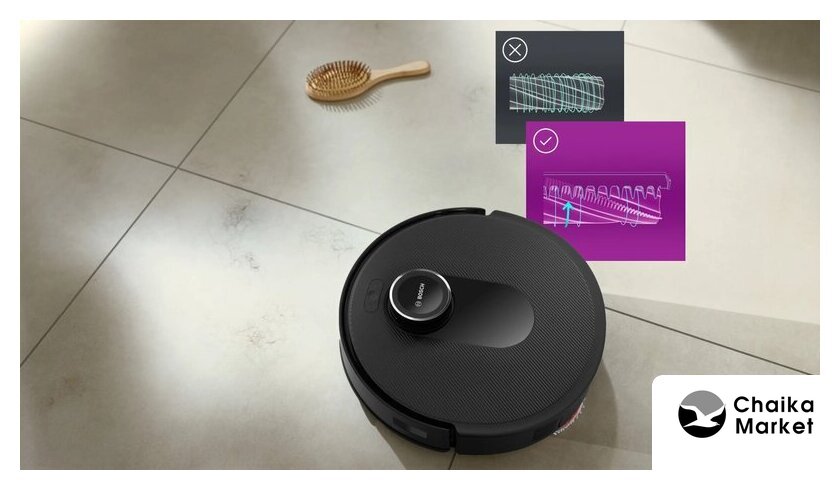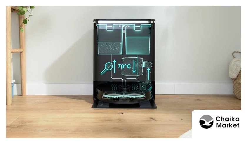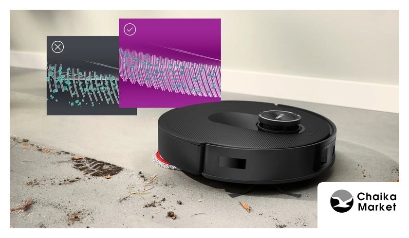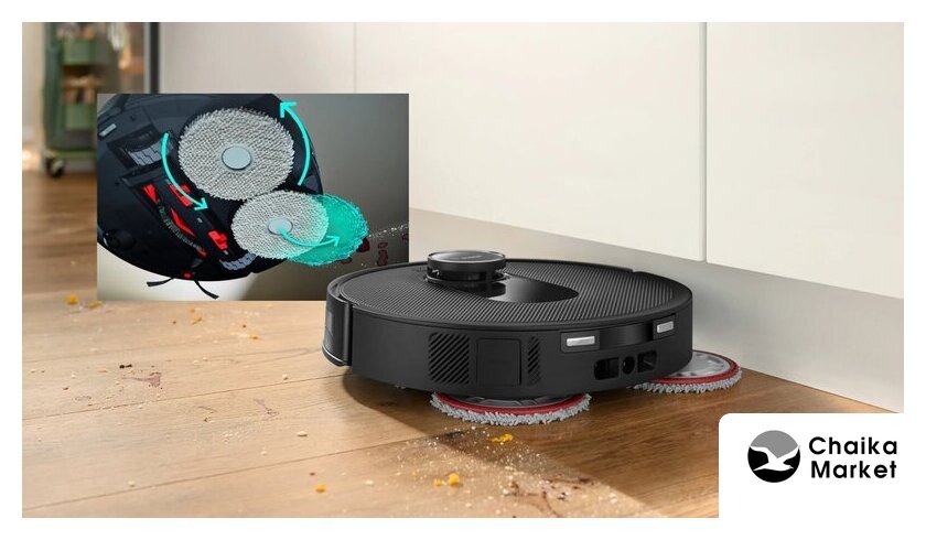 влажная уборка, сила всасывания 18000 Па, с турбощеткой, навигация: контактный бампер, камера TOF (3D), датчики перепада высоты, база самоочистки