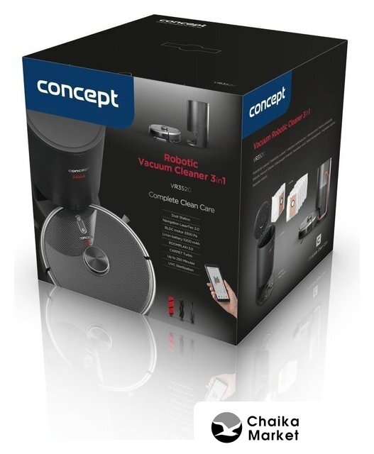 влажная уборка, фирменное приложение, сила всасывания 19000 Па, пылесборник 0.3 л, с турбощеткой, навигация: контактный бампер, лидар, камера TOF (3D), датчики перепада высоты, лазерные датчики препятствий, план нескольких этажей, база самоочистки