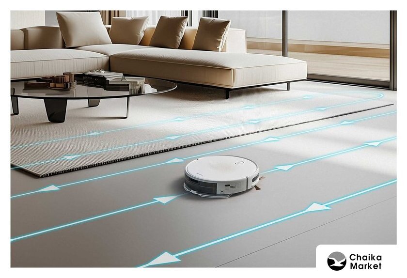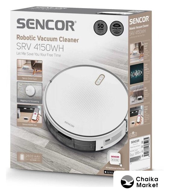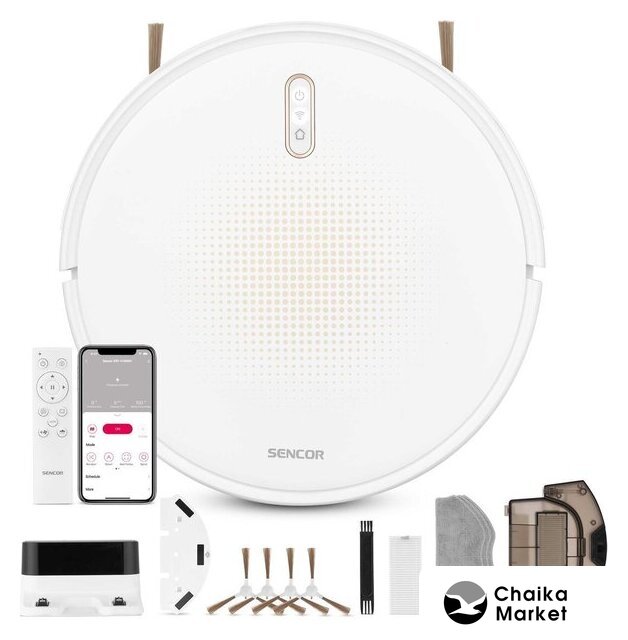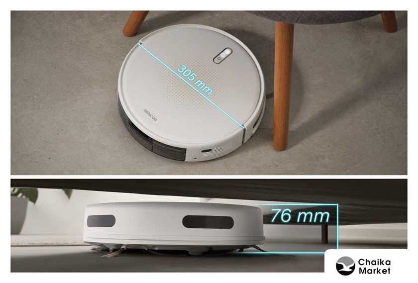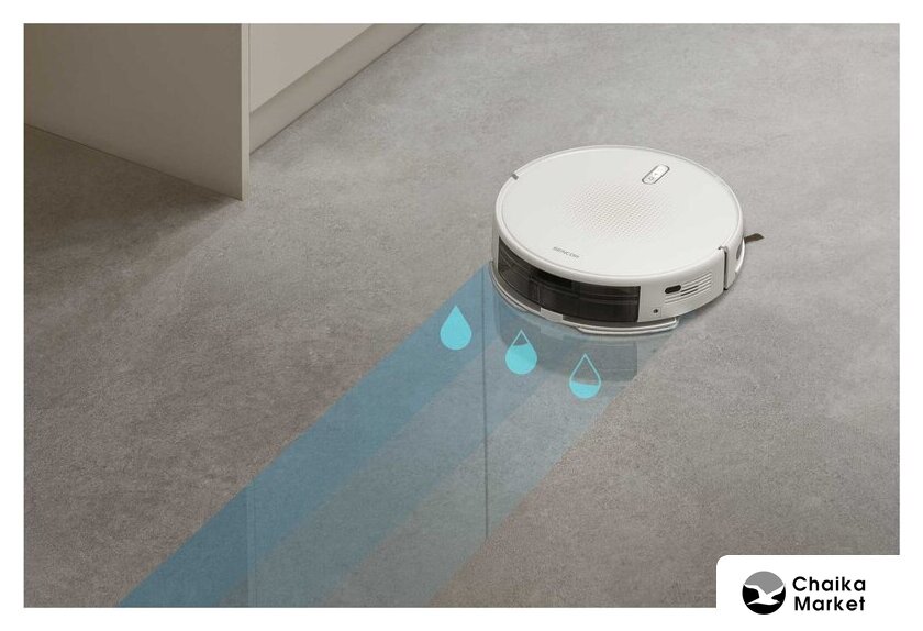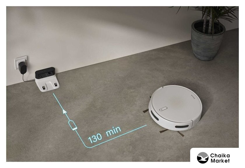 влажная уборка, сила всасывания 2000 Па, навигация: контактный бампер, датчики перепада высоты