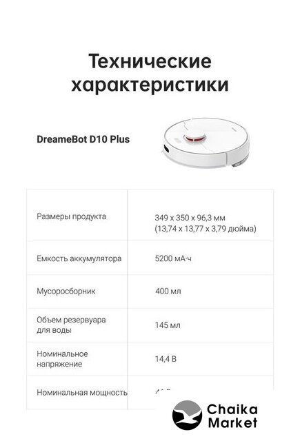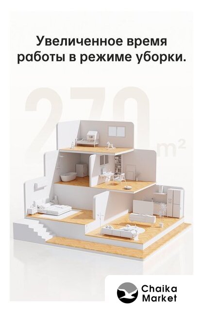 влажная уборка, сила всасывания 5000 Па, пылесборник 0.33 л, с турбощеткой (разборная), навигация: лидар, камера TOF (3D), датчики перепада высоты, план нескольких этажей