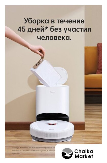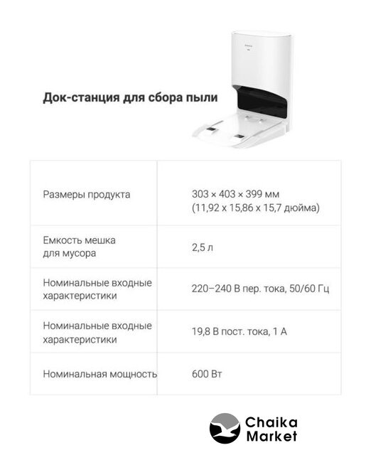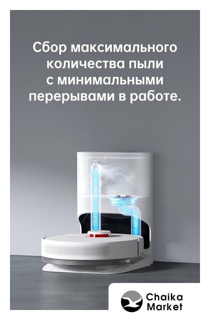 влажная уборка, мощность 40 Вт, сила всасывания 4000 Па, пылесборник 0.25 л, с турбощеткой, навигация: контактный бампер, лидар, датчики перепада высоты, план нескольких этажей, база самоочистки