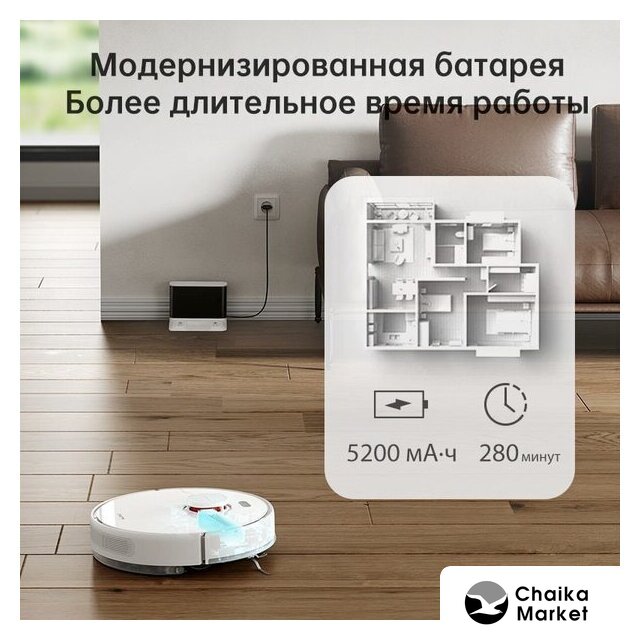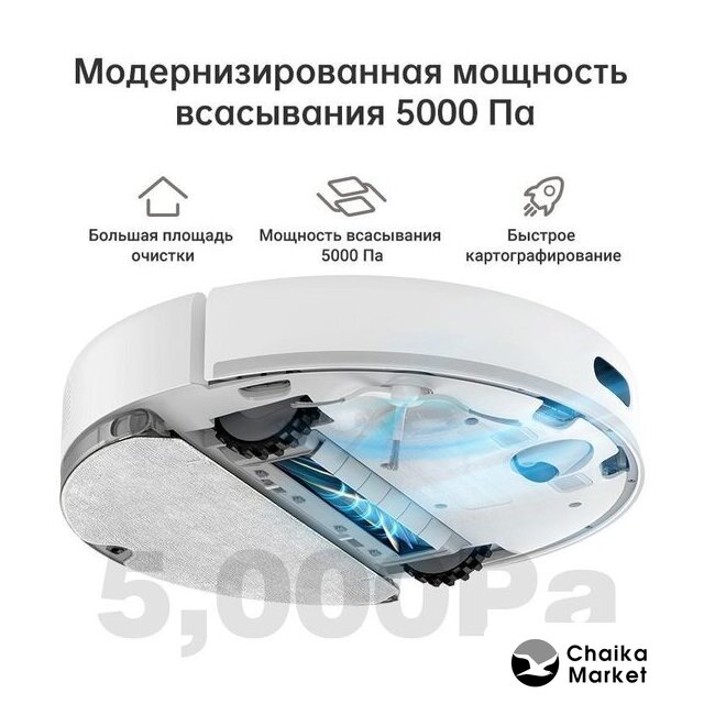 влажная уборка, сила всасывания 7000 Па, пылесборник 0.47 л, с турбощеткой, навигация: контактный бампер, лидар, камера TOF (3D), датчики перепада высоты, план нескольких этажей