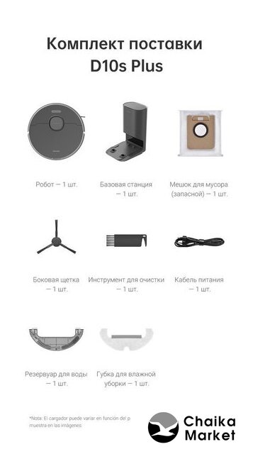 Комплектация | Робот-пылесосРезервуар для воды с тряпкойБазовая станция с функцией самоочисткиЗапасная боковая щеткаИнструмент для очисткиКабель питания |