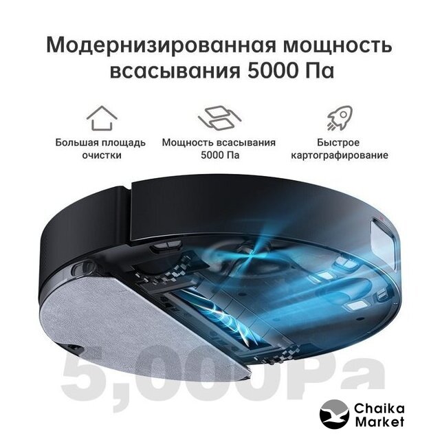 влажная уборка, Mi Home/Яндекс Алиса/Amazon Echo/Google Home/фирменное приложение, мощность 46 Вт, сила всасывания 5000 Па, пылесборник 0.4 л, с турбощеткой, навигация: контактный бампер, лидар, датчики перепада высоты, план нескольких этажей, база самоочистки