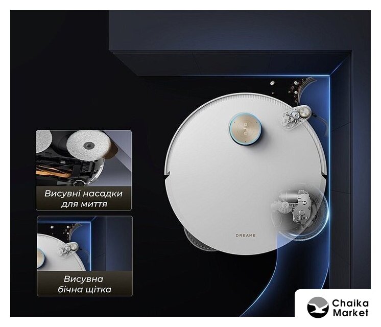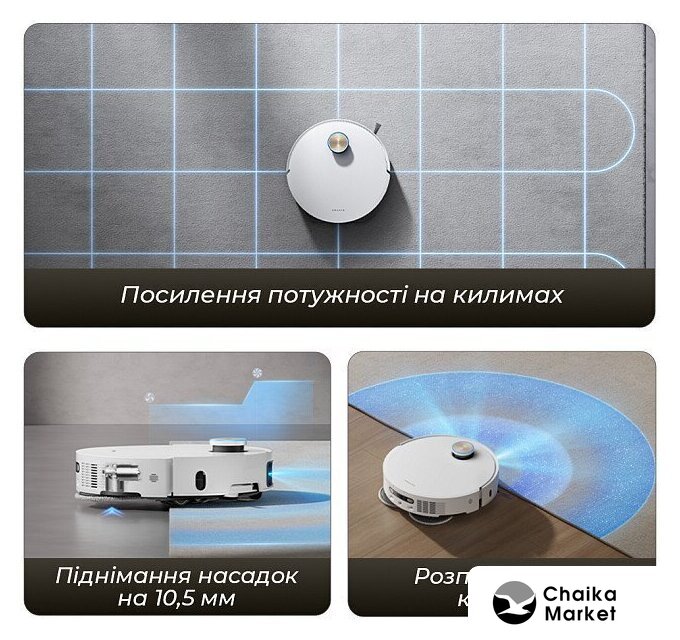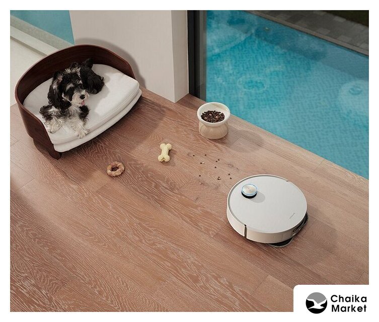 влажная уборка, фирменное приложение, сила всасывания 20000 Па, навигация: контактный бампер, лидар, камера TOF (3D), датчики перепада высоты, план нескольких этажей, база самоочистки