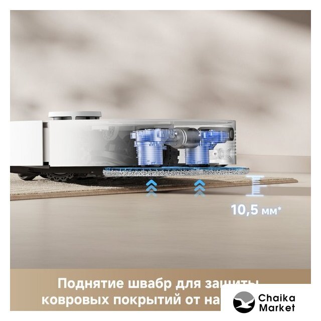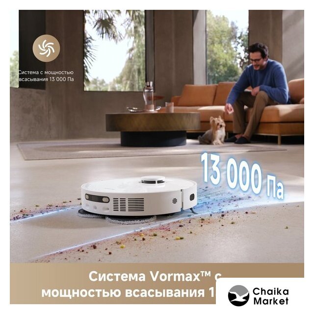 влажная уборка, Google Home, мощность 42 Вт, сила всасывания 3000 Па, пылесборник 0.25 л, с турбощеткой, навигация: лидар, датчики перепада высоты, база самоочистки