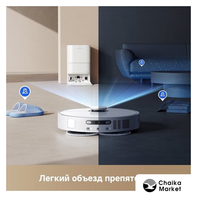 влажная уборка, мощность 45 Вт, сила всасывания 4000 Па, пылесборник 0.3 л, с турбощеткой, навигация: контактный бампер, лидар, датчики перепада высоты, база самоочистки
