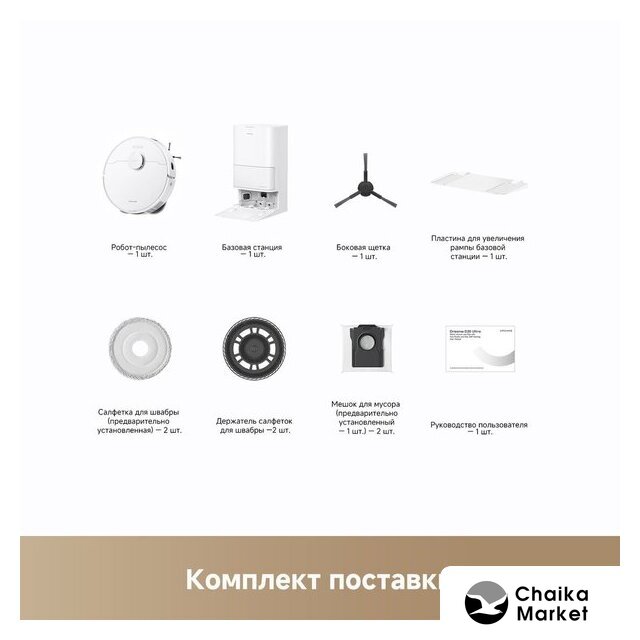 Комплектация | робот-пылесосбазовая станциязапасной мешок для базы |