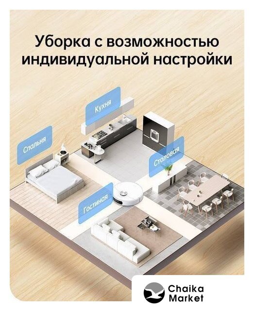 влажная уборка, фирменное приложение, сила всасывания 6000 Па, пылесборник 0.4 л, с турбощеткой, навигация: контактный бампер, лидар, датчики перепада высоты, план нескольких этажей, база самоочистки