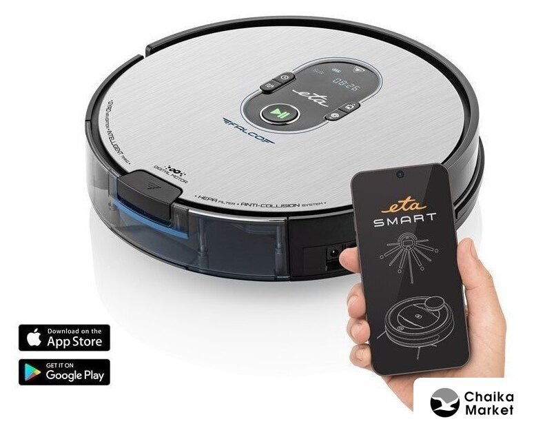 Комплектация | Вместе с пылесосом вы получите зарядную базу, адаптер для зарядки, пульт дистанционного управления, две запасные боковые щетки, специальную вращающуюся и ламельную щетку, две ткани для швабры, запасной фильтр HEPA, насадку для швабры с резервуаром для воды на 300 мл и виртуальную стену. |