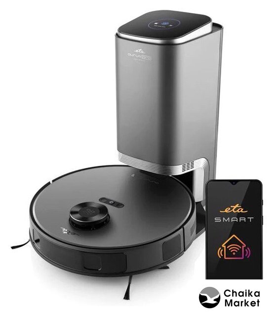 влажная уборка, фирменное приложение, сила всасывания 4000 Па, с турбощеткой, навигация: контактный бампер, лидар, датчики перепада высоты, база самоочистки