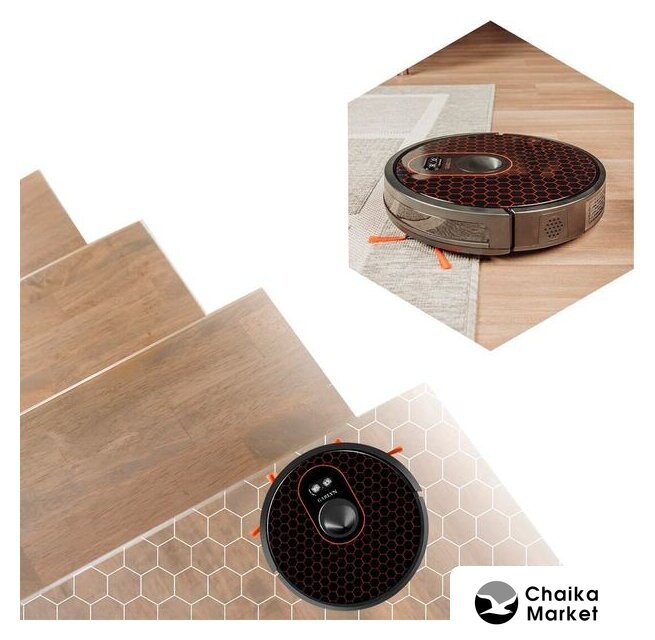 влажная уборка, фирменное приложение, сила всасывания 10000 Па, с турбощеткой, навигация: контактный бампер, лидар, датчики перепада высоты, лазерные датчики препятствий, база самоочистки