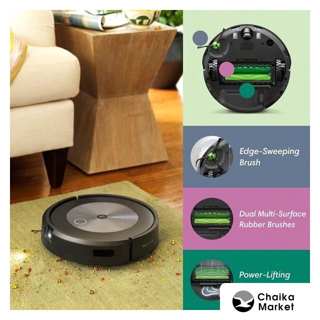Комплектация | Робот-пылесос Roomba® j7.Док-станция Home Base для зарядки.Сетевой шнур.1 дополнительный фильтр.1 дополнительная щетка для уборки вдоль стен. |