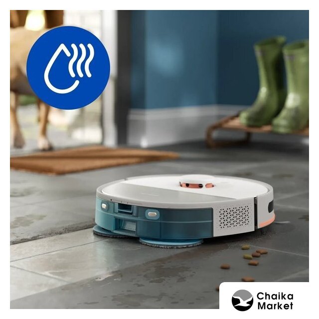 влажная уборка, фирменное приложение, сила всасывания 4000 Па, с турбощеткой, навигация: контактный бампер, лидар, датчики перепада высоты, база самоочистки