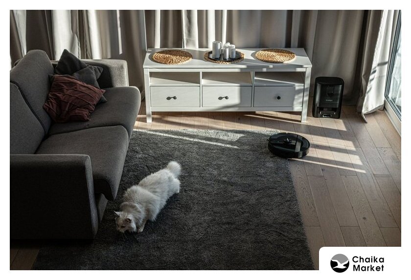 влажная уборка, фирменное приложение, сила всасывания 10000 Па, с турбощеткой, навигация: контактный бампер, лидар, датчики перепада высоты, лазерные датчики препятствий