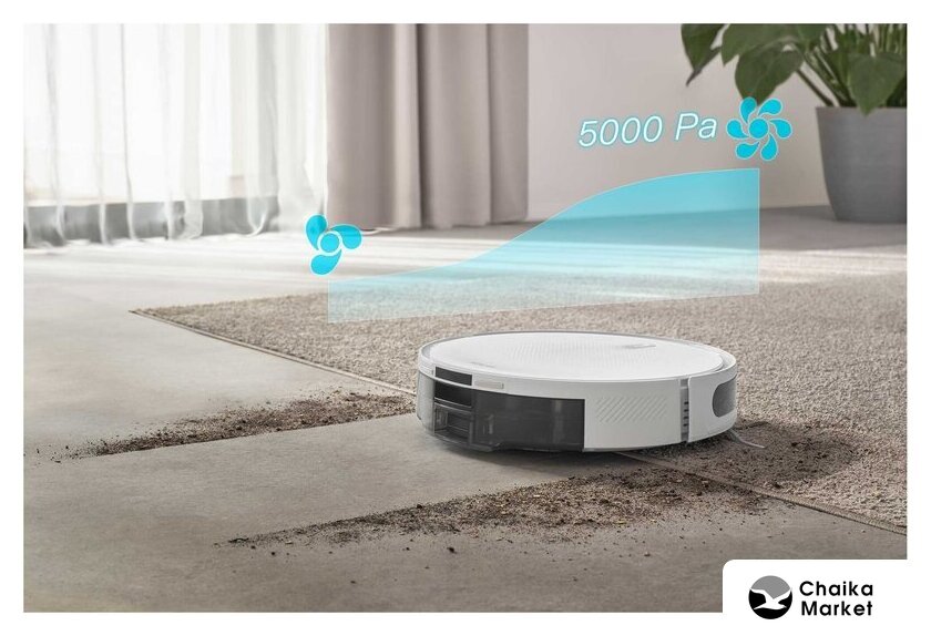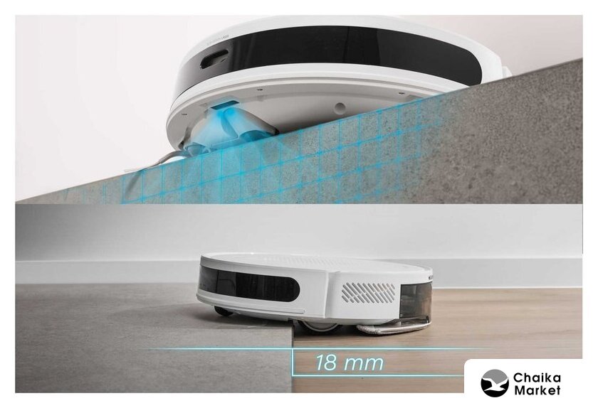 влажная уборка, мощность 45 Вт, сила всасывания 2000 Па, пылесборник 0.8 л, с турбощеткой, навигация: контактный бампер, лидар, датчики перепада высоты, план нескольких этажей