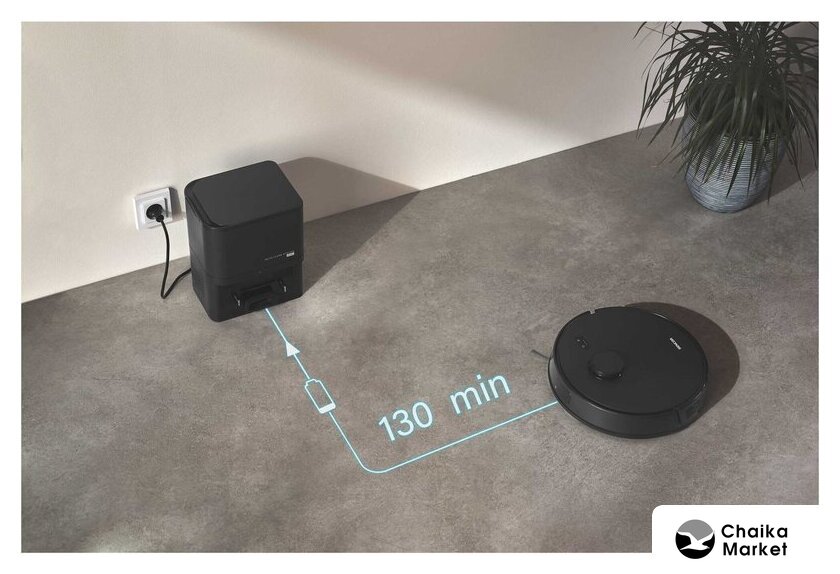 влажная уборка, Amazon Echo/Google Home, сила всасывания 8000 Па, пылесборник 0.45 л, с турбощеткой, навигация: контактный бампер, камера TOF (3D), датчики перепада высоты, план нескольких этажей, база самоочистки