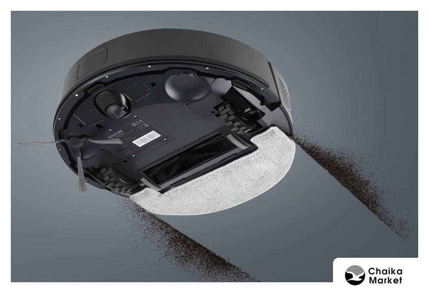 влажная уборка, фирменное приложение, сила всасывания 2200 Па, с турбощеткой, навигация: контактный бампер, датчики перепада высоты, база самоочистки