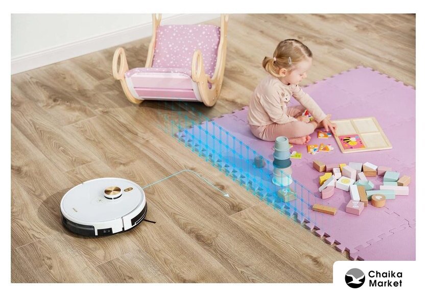 влажная уборка, фирменное приложение, сила всасывания 6000 Па, пылесборник 0.4 л, с турбощеткой, навигация: контактный бампер, лидар, датчики перепада высоты, план нескольких этажей, база самоочистки