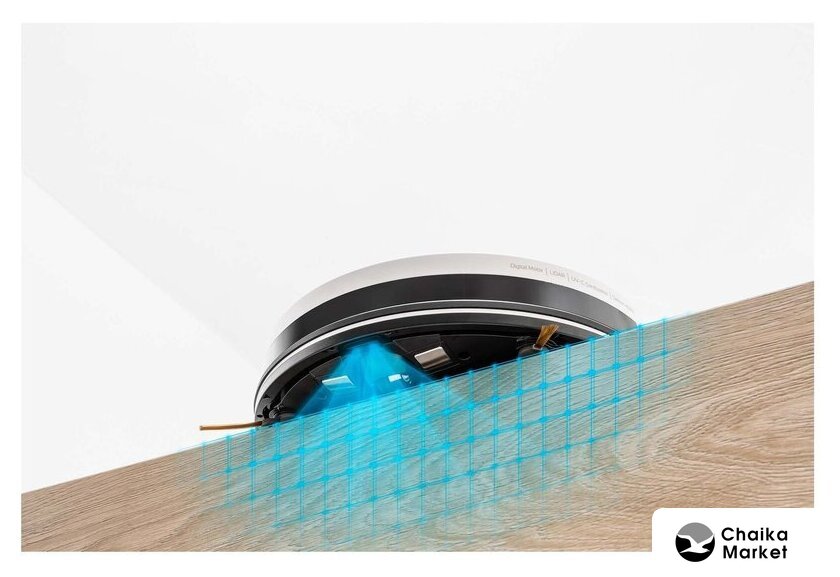 влажная уборка, сила всасывания 4000 Па, пылесборник 0.57 л, навигация: контактный бампер, лидар, датчики перепада высоты, база самоочистки