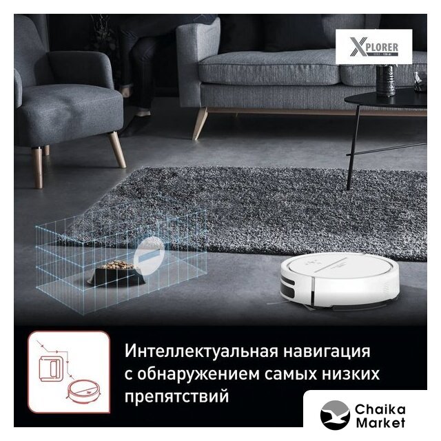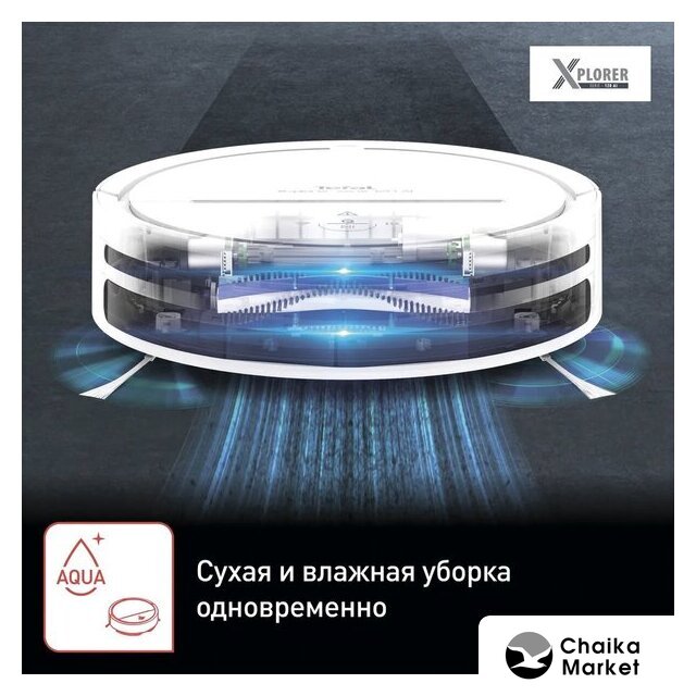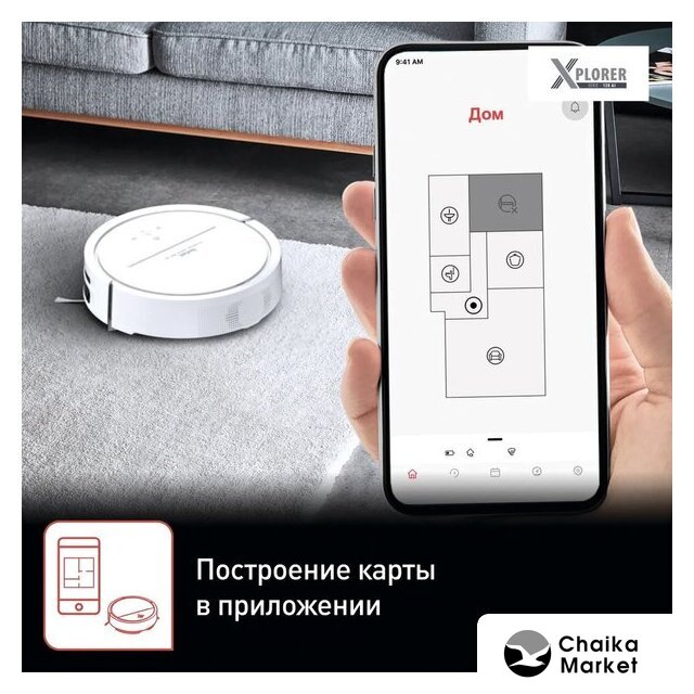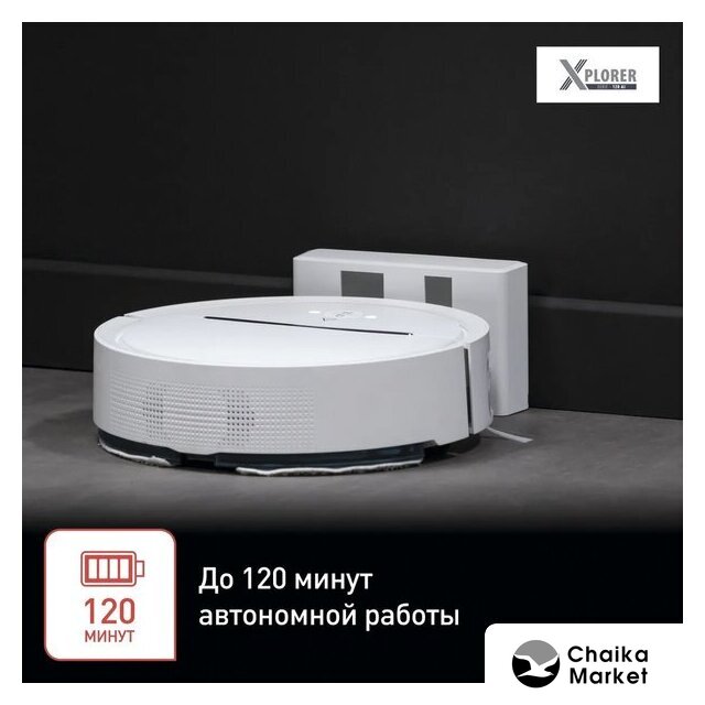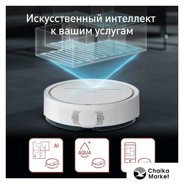 влажная уборка, фирменное приложение, сила всасывания 10000 Па, с турбощеткой, навигация: контактный бампер, лидар, датчики перепада высоты, лазерные датчики препятствий, база самоочистки