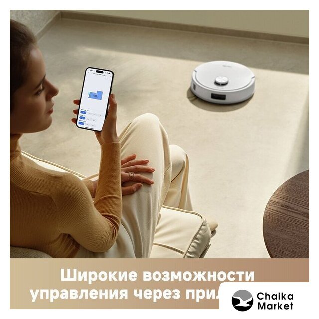 влажная уборка, фирменное приложение, мощность 40 Вт, сила всасывания 6000 Па, пылесборник 0.57 л, с турбощеткой, навигация: контактный бампер, лидар, датчики перепада высоты, план нескольких этажей