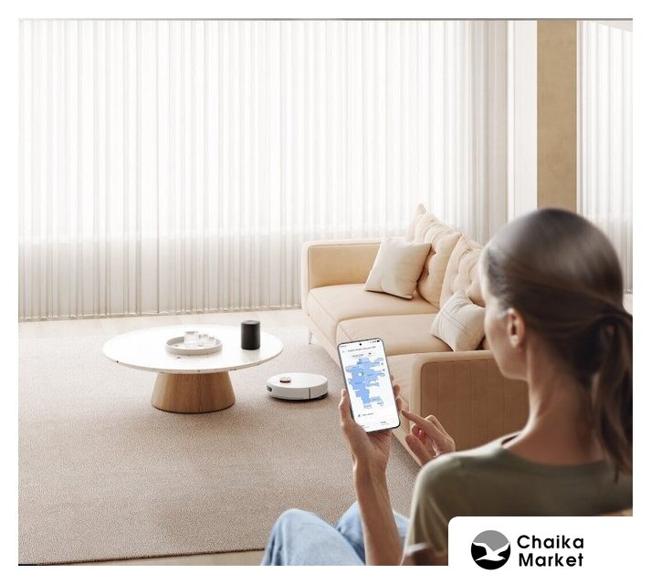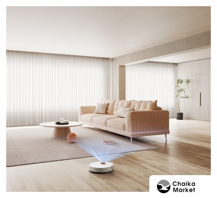 влажная уборка, фирменное приложение, мощность 40 Вт, сила всасывания 6000 Па, пылесборник 0.57 л, с турбощеткой, навигация: контактный бампер, лидар, датчики перепада высоты, план нескольких этажей