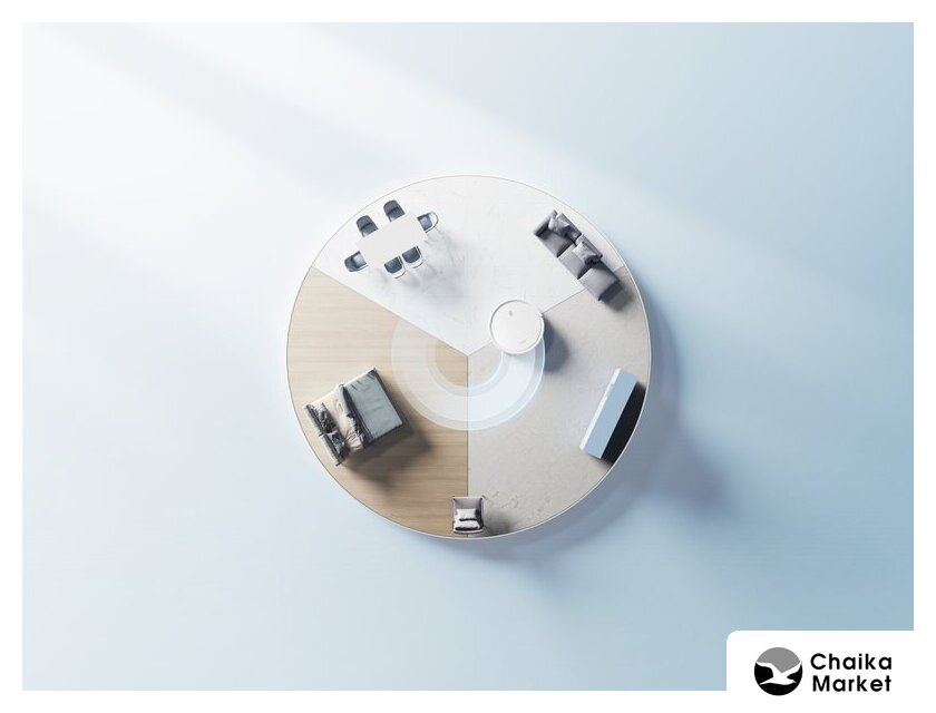 влажная уборка, фирменное приложение, мощность 40 Вт, сила всасывания 6000 Па, пылесборник 0.57 л, с турбощеткой, навигация: контактный бампер, лидар, датчики перепада высоты, план нескольких этажей