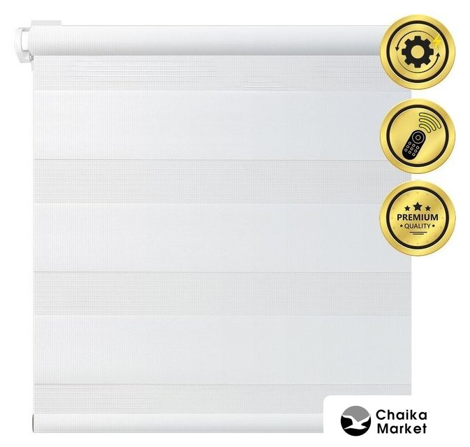 рулонная электроштора, затеняющие (Dim-out), крепление к стене/к потолку/к раме, полиэстер, слоновая кость/черный