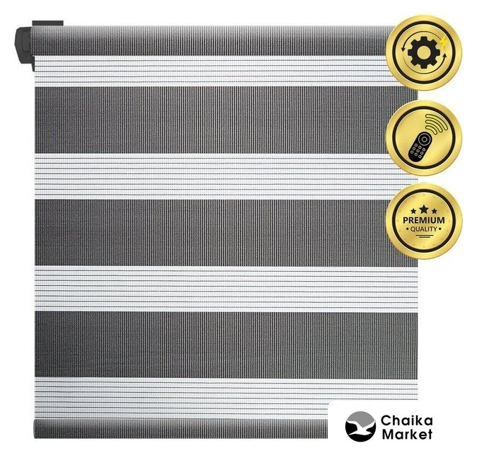Рулонная электроштора НеоФьюжен Баланс 270х250 левая (темно-серый, белая фурнитура) — Chaika Market