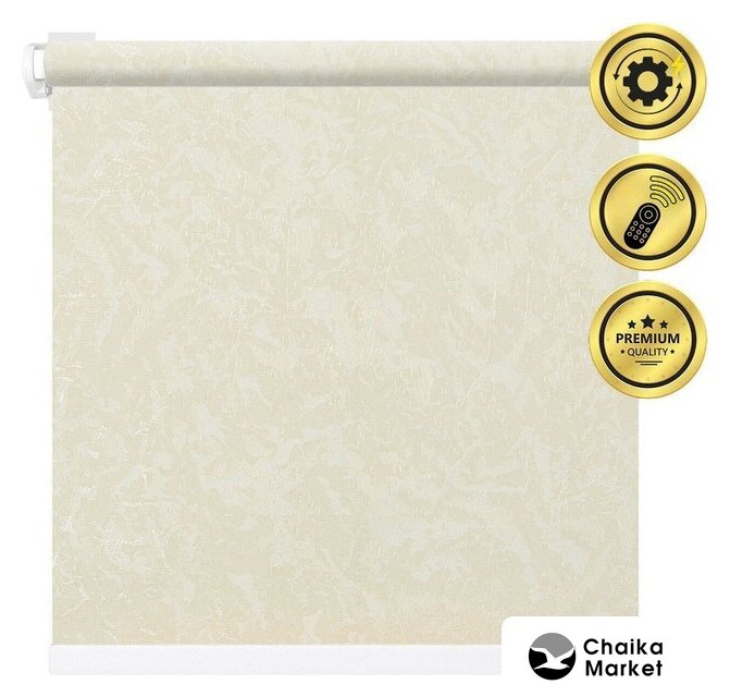 рулонная электроштора, непрозрачные (Blackout), крепление к стене/к раме, лен/полиэстер, бежевый/белый