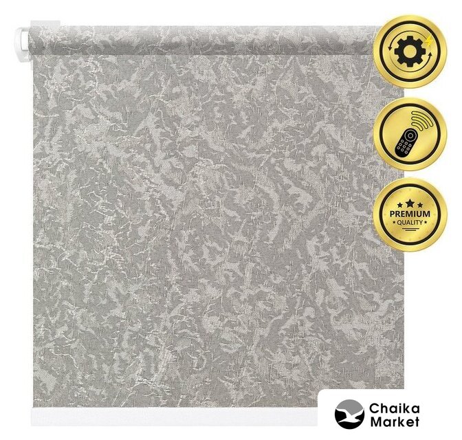 рулонная электроштора, затеняющие (Dim-out), 200x200 см, крепление к потолку/к стене/к раме, полиэстер, серый