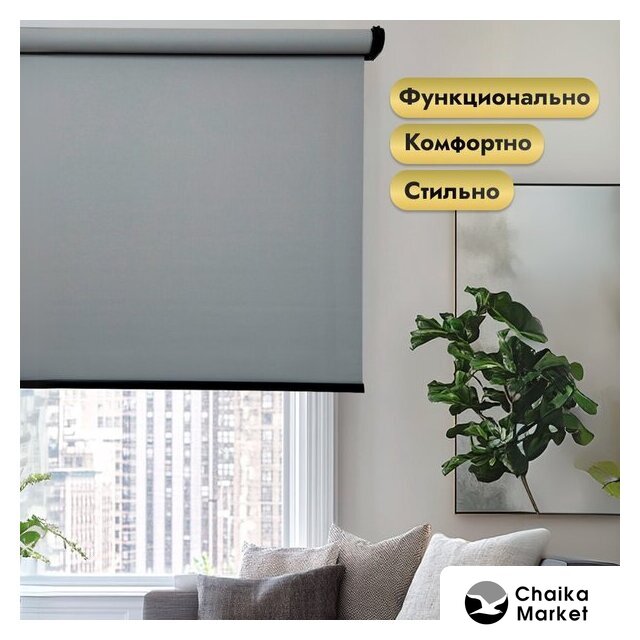 рулонная электроштора, затеняющие (Dim-out), крепление к потолку/к стене/к раме, полиэстер, серый/черный