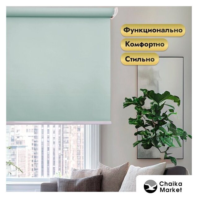 рулонная электроштора, затеняющие (Dim-out), 270x250 см, крепление к потолку/к стене/к раме, полиэстер, зеленый
