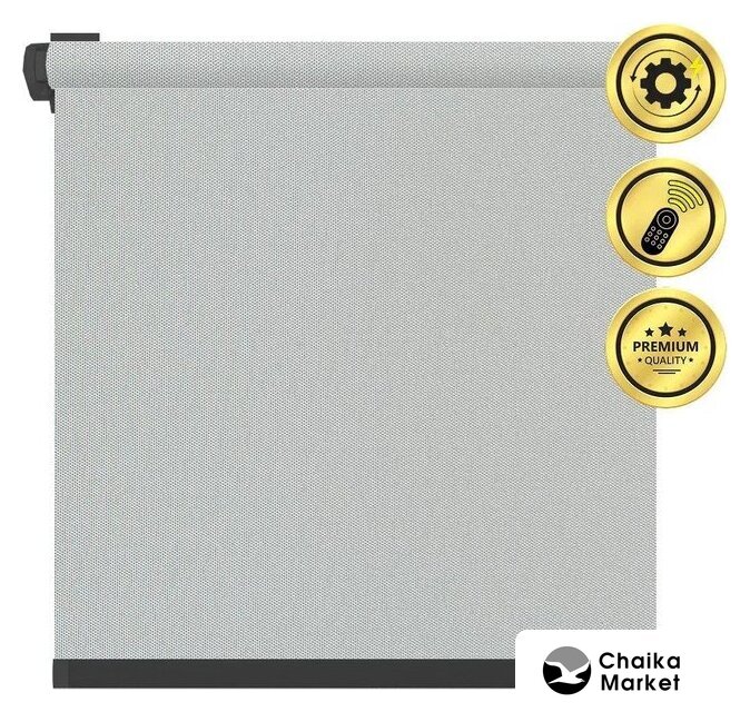 рулонная электроштора, затеняющие (Dim-out), крепление к потолку/к стене/к раме, полиэстер, серый