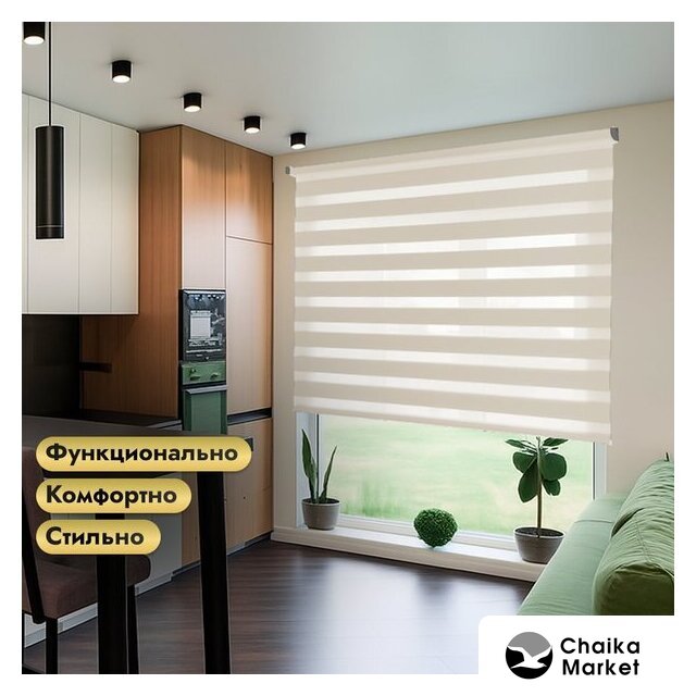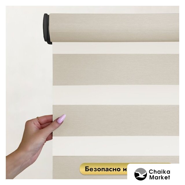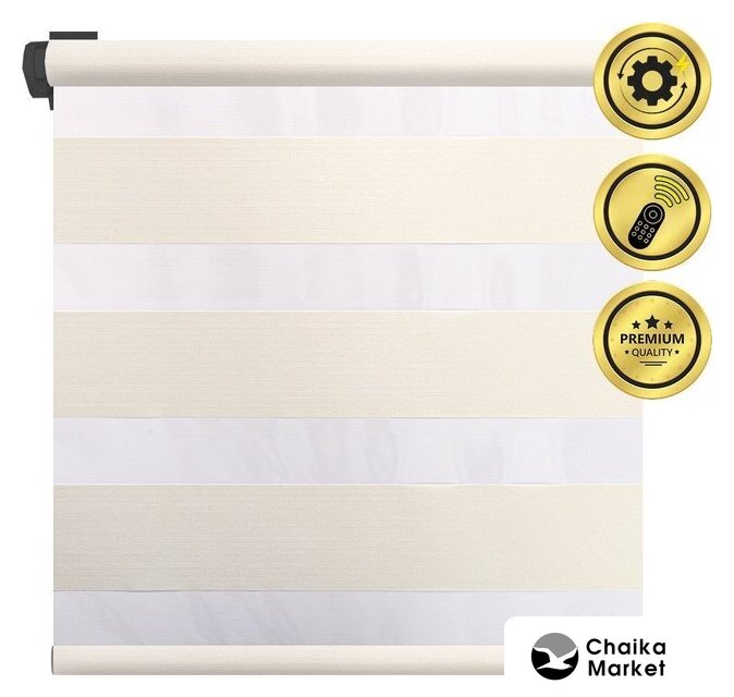 рулонная электроштора, затеняющие (Dim-out), крепление к стене/к потолку/к раме, полиэстер, бежевый