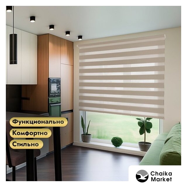 рулонная электроштора, затеняющие (Dim-out), крепление к стене/к потолку/к раме, полиэстер, слоновая кость/бежевый