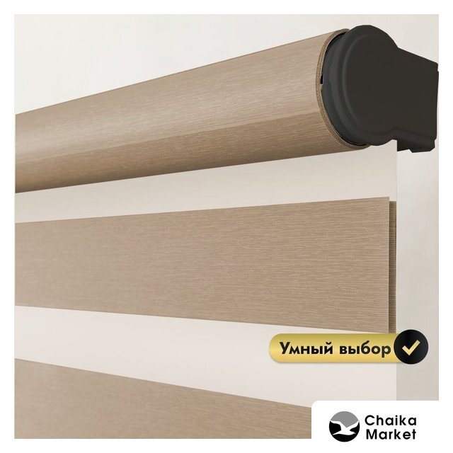 рулонная электроштора, затеняющие (Dim-out), крепление к стене/к потолку/к раме, полиэстер, бежевый