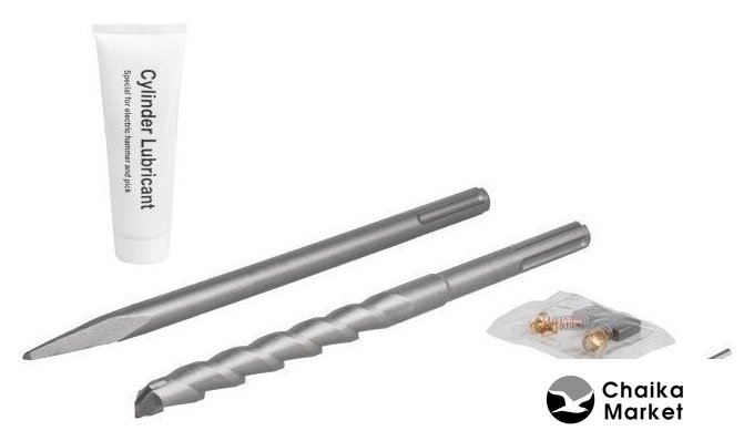 | Комплект поставки | перфоратор; дополнительная рукоятка; кейс; бур по бетону 25х350 мм; зубило пиковое 18х350 мм; смазка; инструкция по эксплуатации; комплект щеток |