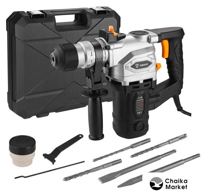 | Комплект поставки | Бур 8, 10, 12 мм - 3 штДолото острое - 1 штДолото плоское - 1 штГлубиномер - 1 штСмазка - 1 штКлюч - 1 штПротивопыльный кожух - 1 штИнструкцияКейс |