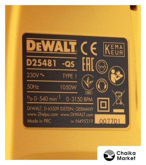 1050 Вт, питание: сеть, 2500 ударов/мин, энергия удара: 6.1 Дж, 7000 г