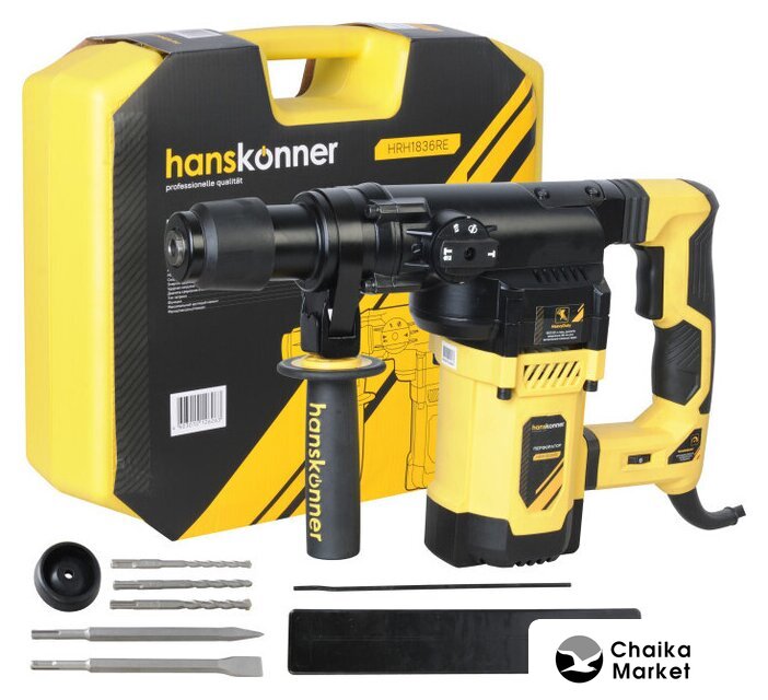 Комплект поставки | Дополнительная рукоять - 1 шт. Глубиномер - 1 шт. Угольные щётки - 1 комплект Смазка для хвостовиков буров-1 шт. SDS+ сверла 3 шт Долото 2 шт. Пылезащитный колпачок - 1шт. Кейс. |