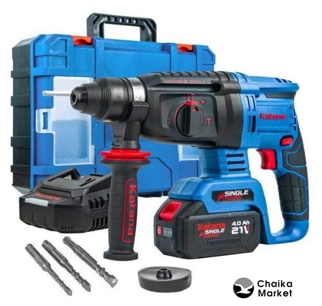 Комплект поставки | - Перфоратор - 1 шт. - Зарядное устройство для аккумуляторного блока - 1 шт. - Буры по бетону - 3 шт. (6/8/10мм) - Руководство по эксплуатации с гарантийным талоном - 1 шт.- Кейс - 1 шт. - Аккумуляторный блок - 1 шт. (4 Ач) |