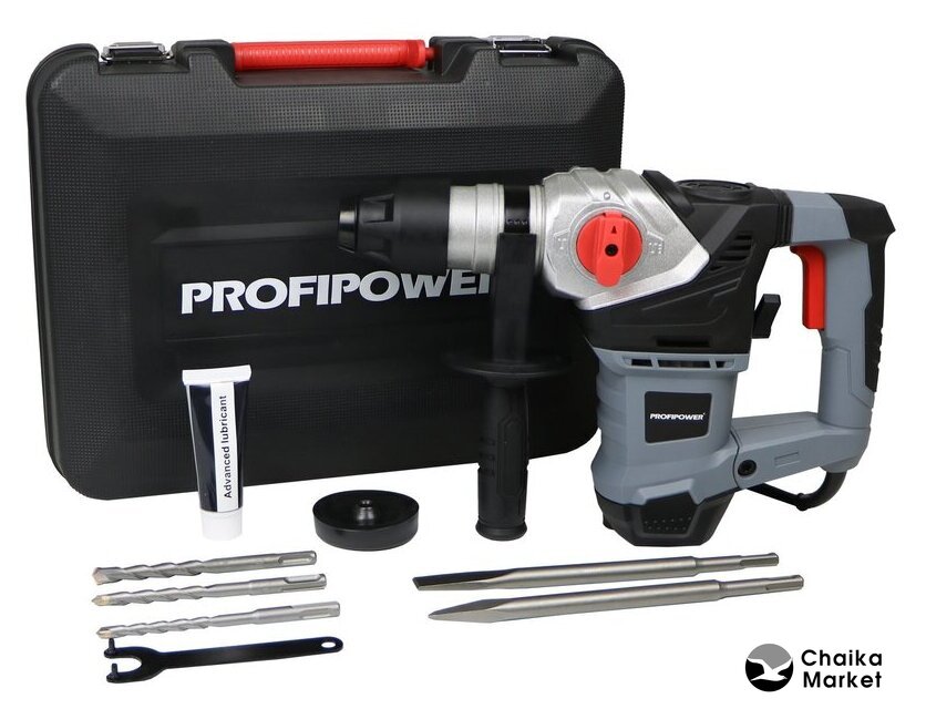 Комплект поставки | - Сверла - 3шт;- Зубило плоское;- Пика;- Смазка;- Пыльник защитный;- Ключ;- Щетки угольные;- Кейс;- Дополнительная рукоятка;- Инструкция. |
