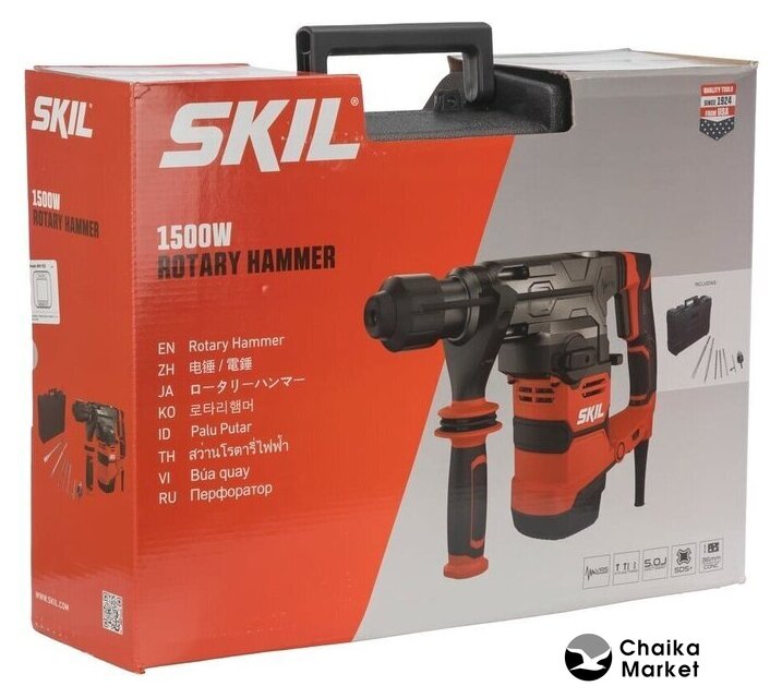 | Комплект поставки | - Перфоратор SKIL RH1183- 3 бура SDS+ (8, 10, 12 мм)- Пика (острое зубило)- Плоское зубило- Патрон 13 мм с адаптером SDS+- Ограничитель глубины- Прочный кейс |